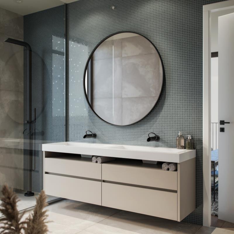 Hipp spiegel rond met mat zwart met directe LED baan rondom