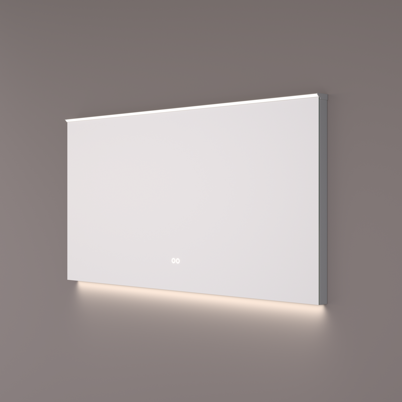 Hipp spiegel met 45 graden LED strip boven en indirecte LED verlichting onder.