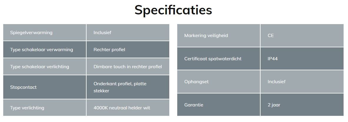 Inclusief spiegelverwarming en dimfunctie