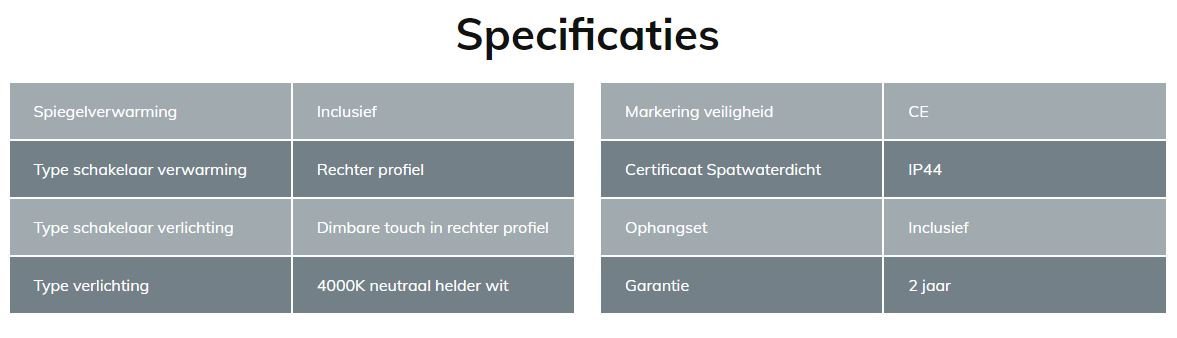 Inclusief spiegelverwarming en dimfunctie