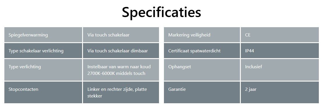 Inclusief spiegelverwarming, kleuren wissel en dimfunctie