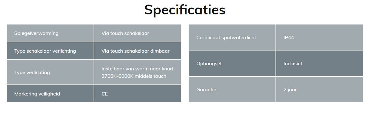 Inclusief spiegelverwarming, kleurenwissel en dimfunctie