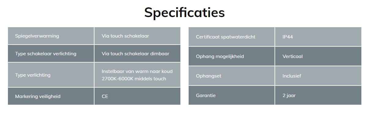 Inclusief spiegelverwarming, kleurenwissel en dimfunctie