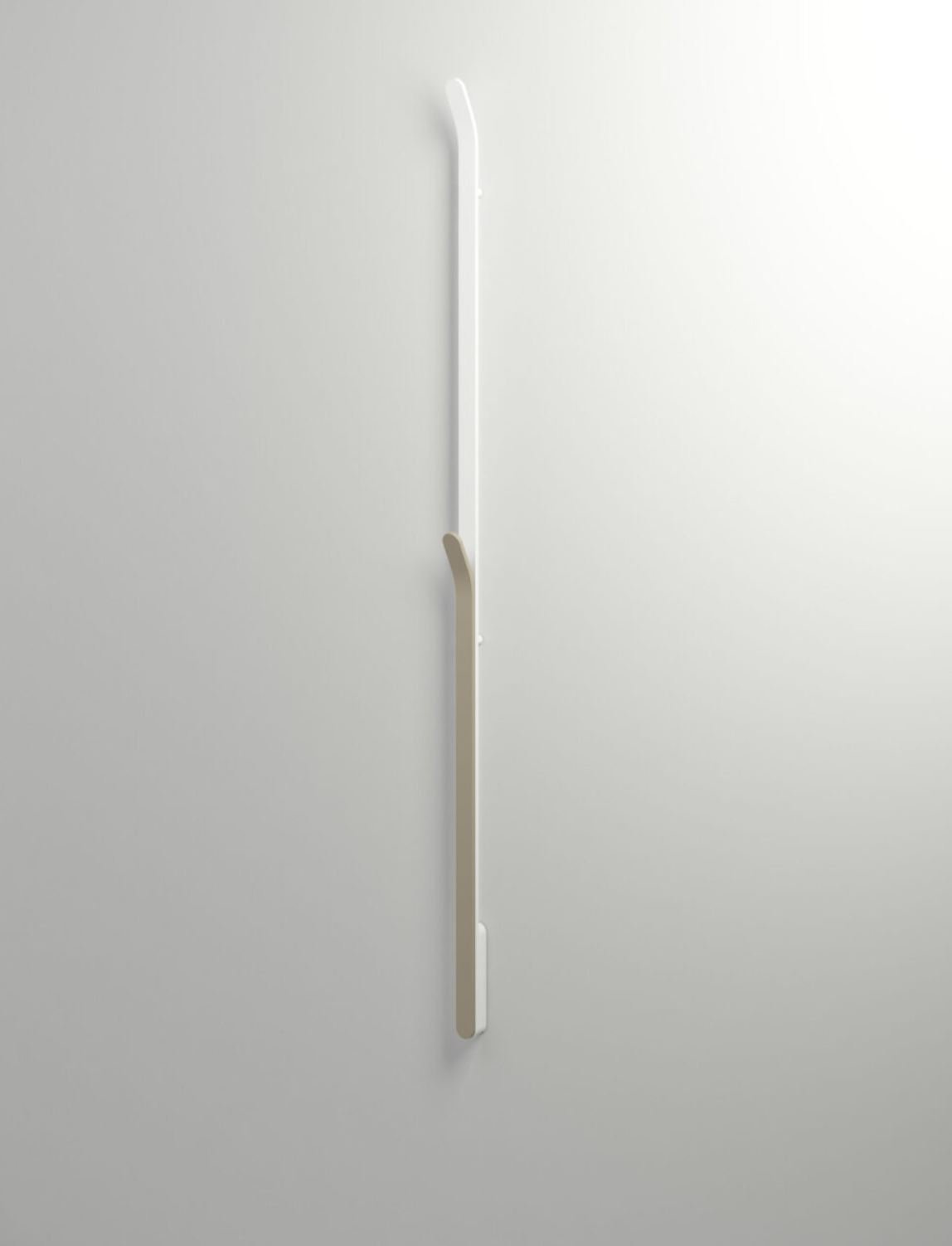 Leverbaar in wit of zwart achterstuk met voorstuk in wit, zwart, geborsteld of gepolijst aluminium. De aan/uit-knop bevindt zich aan de onderzijde. Als de handdoekwarmer in bedrijf is, brandt er een licht onder de knop. Het led-licht aan de onderzijde, dat naar de vloer is gericht, is een leuke feature die zorgt voor aangenaam licht in het donker.
