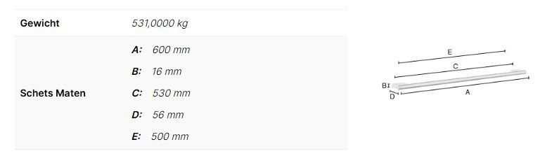 Lengte 600 mm, cc 553 mm.