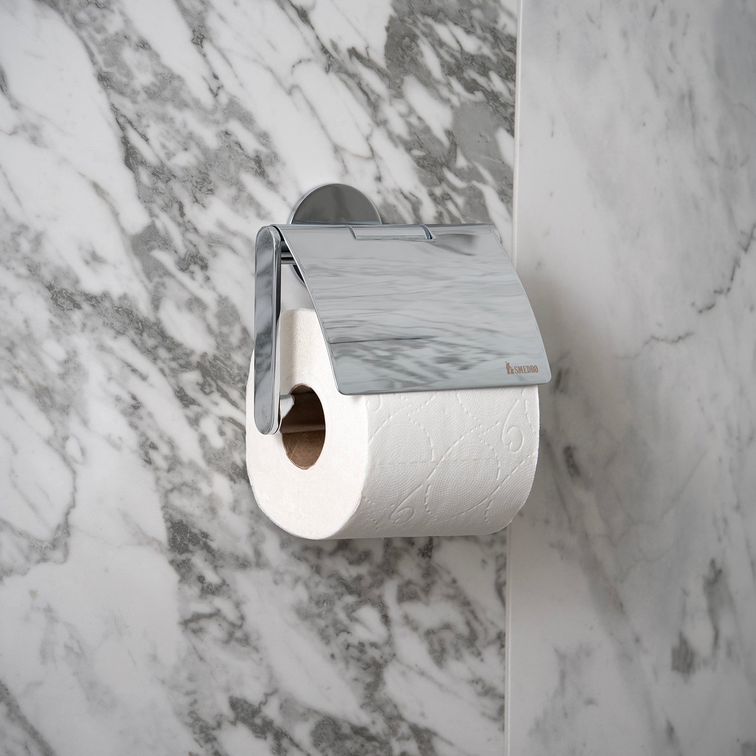 Stijlvolle en praktische toiletrolhouder met deksel en ronde zelfklevende achterplaat. Met dit functionele ontwerp hoef je niet meer in de muren te boren. Geef je badkamer een upgrade en creëer een luxe sfeer met gepolijst chroom.