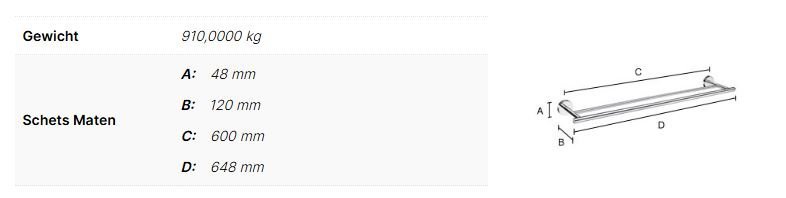 HOME Dubbele Handdoekhouder. Zwart. Lengte 648 mm. cc 600 mm.