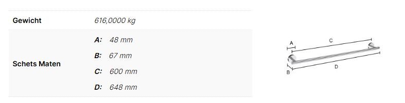 HOME Handdoekhouder. Zwart. Lengte 648 mm. cc 600 mm.