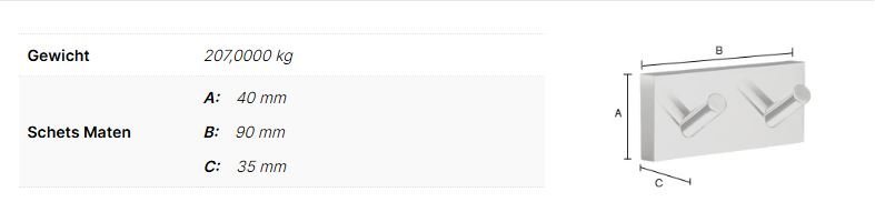 HOUSE Dubbele haak. Wit. Lengte 90 mm.