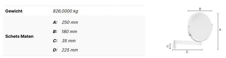 OUTLINE Vergrotingsspiegel Draaibaar. Chroom. PMMA. IP21. Led verlichting. Oplaadbare batterij doormiddel van USB aansluiting. Wandmodel. Vergrotend 7 voudig en normaal. Spiegel diameter 180 mm Max. uitzwaai 225 mm.