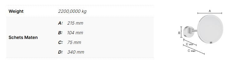 OUTLINE Vergrotingsspiegel Draaibaar PMMA. IP21. Led verlichting door middel van sensor. Oplaadbare batterij doormiddel van USB aansluiting. Wandmodel. Vergrotend 7 voudig. Spiegel diameter 215 mm Max. uitzwaai 340 mm. Chroom.