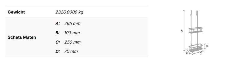 SIDELINE Douchedraadkorf Dubbel (incl glasbescherming). Zwart. Korf 250 x 103 mm. Korfhoogte 70 mm. Totaal Hoogte 765 mm.